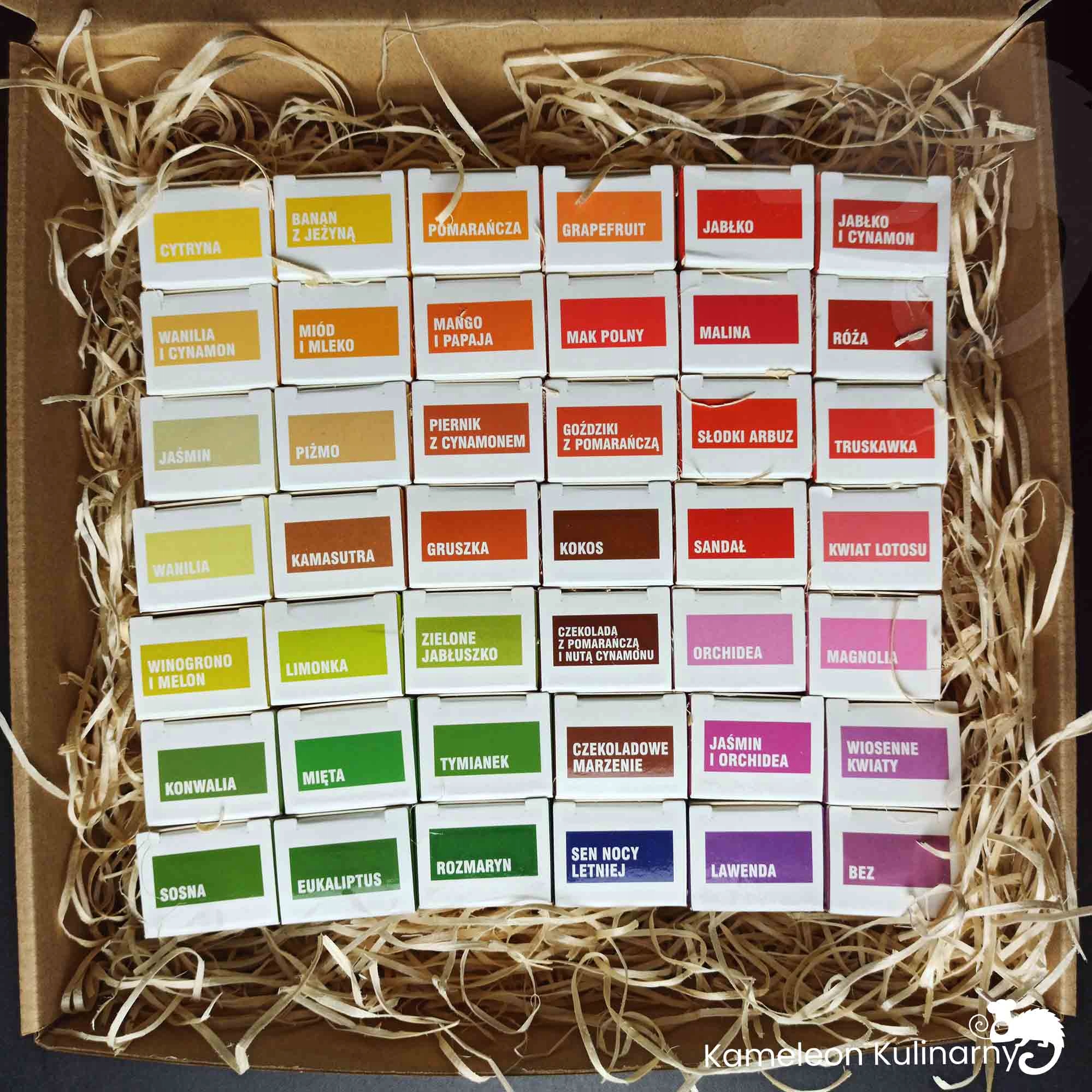 Zestaw zróżnicowanych zapachów DO AROMATERAPII – począwszy od CYTRUSOWYCH, przez najbardziej popularne i najczęściej wybierane KWIATOWE jak i ziołowe, bardziej lecznicze, nadające się do INHALACJI.