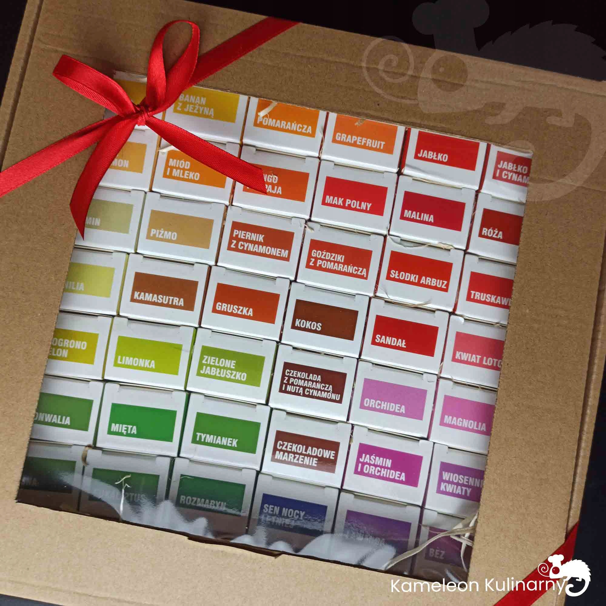 Całość zapakowana w elegancki kartonik, wypełniony eko-siankiem, przewiązany kokardką.